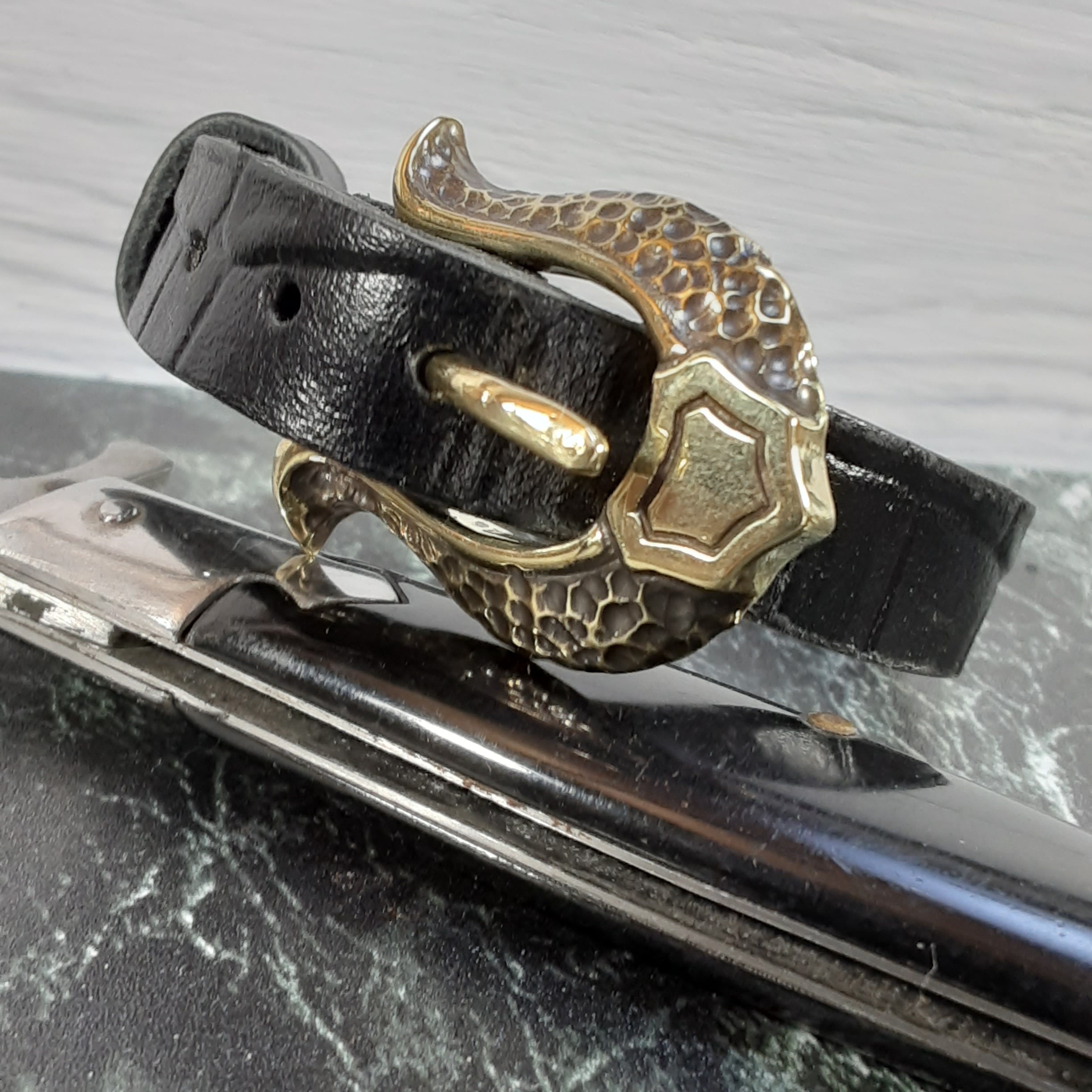ゴツゴツとしたバックルをセットしたブレスレットになります。